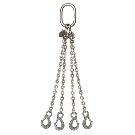 Explore our selection of Four-Leg Chain Slings, available in both Grade 8 and Grade 6 Stainless Steel, meticulously designed to offer durability and robustness for all your lifting needs. Tailor your choice by opting for Sling Hooks, Self-Locking Hooks, or Clevis Sling Hooks, allowing for effortless extension of your operational reach with the simple addition of extra chain to achieve a greater working length.